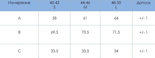 Низ обработан поясом, рукава – манжетами из кашкорсе шириной 6.5 см.