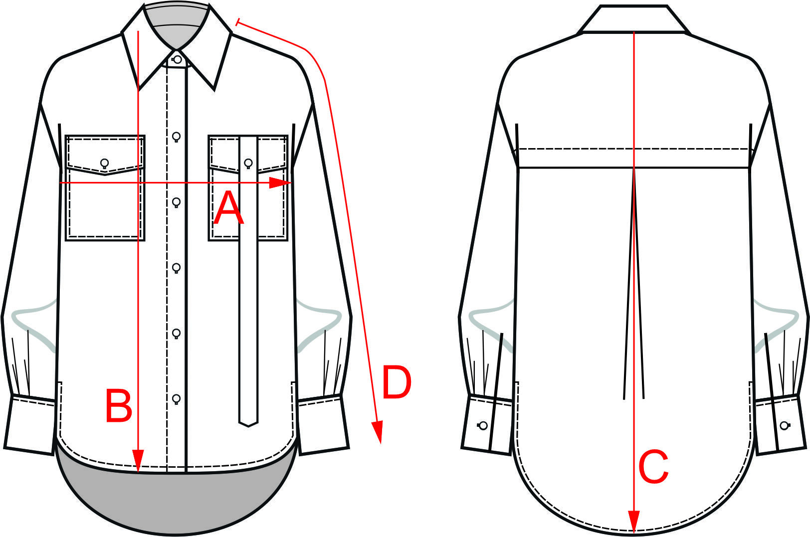 На полочке – накладные карманы с клапанами. На левом клапане отделочный хлястик.