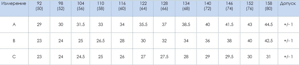 Размерный ряд: 92-158
