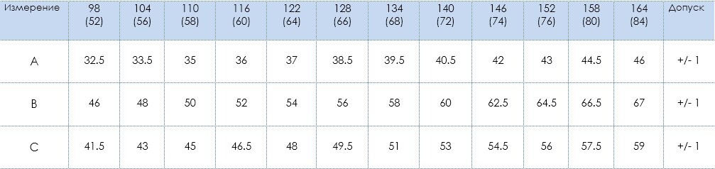 Горловина спинки закрыта киперной лентой шириной 1 см.